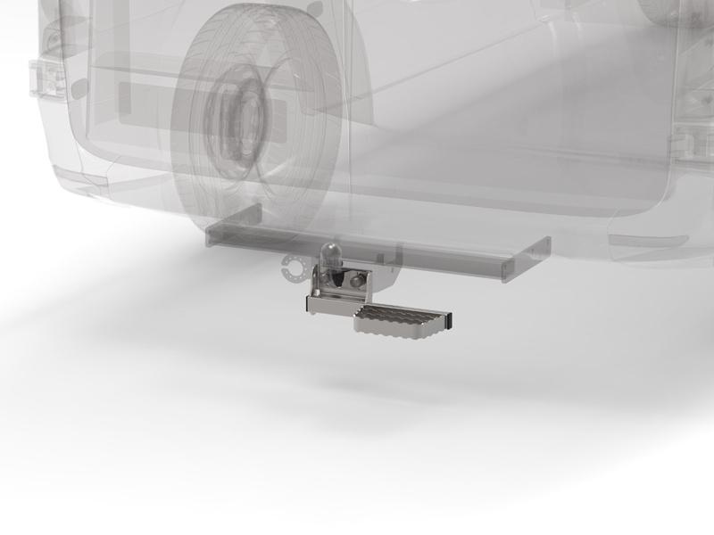 Astinlauta / askelma on yhteensopiva pulttikiinnitteisten vetokoukkujen kanssa (2 x 90 mm / 4 x 83 mm pultit), ja sen asennuskorkeutta voidaan säätää tarpeen mukaan. Askelma voidaan asentaa vetokoukun vasemmalle tai oikealle puolelle.