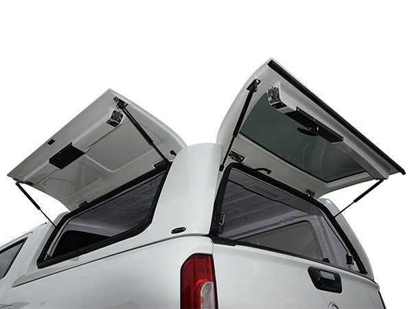 Lukitus yhdistettynä auton omaan keskuslukitukseen tekee käytöstä helppoa ja vaivatonta. Tässä mallissa on myös ylösaukeavat sivuikkunat. Lisäksi kattokaiteisiin kiinnität helposti ja vaivattomasti myös työvalot ja/tai kattotason.
