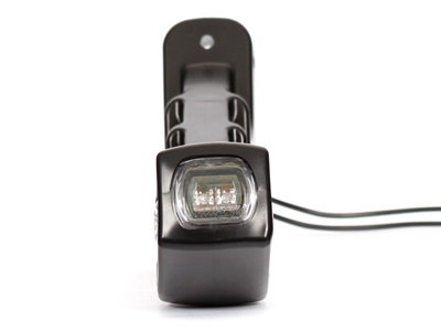 Kolmitoiminen huomiovalo, joka ajoneuvon kylkeen asennettuna näyttää sivulle oranssia valoa, taaksepäin punaista valoa ja eteenpäin näyttävä valo on kirkas.