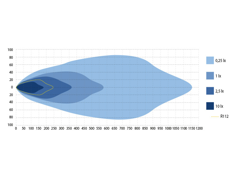 Optiikka on hiottu tuottamaan ennen näkemättömän leveä, tien sivut valaiseva kuvio, unohtamatta että hyvän lisävalon tulee näyttää myös pitkälle. Yhdelle valolle mitattu 1lux@580m (Double-UP toiminnolla) takaa että kahdella, kolmella, tai neljällä valaisimella valokeilan pituus ja kirkkaus ei jätä ketään kylmäksi.