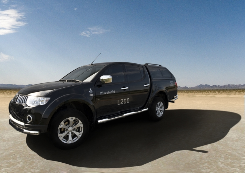 Kuvassa Kylkiputket ja astinlaudat Mitsubishi L200 2019-, Musta