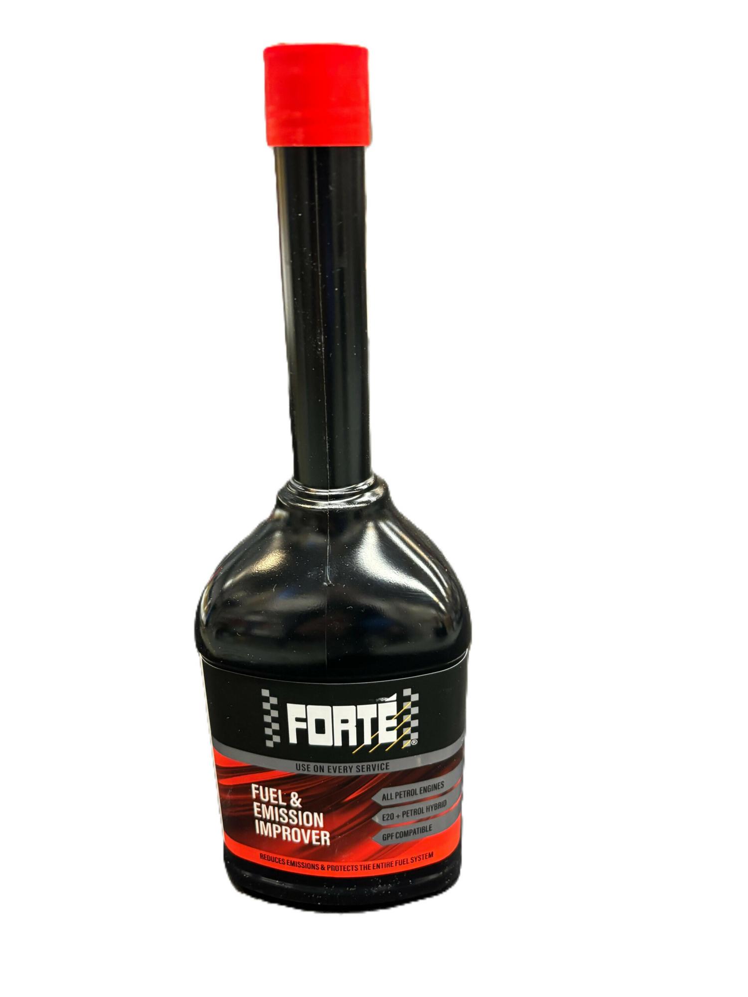 FORTÉ Fuel & Emission Improver monipuolinen ja tehokas bensiinimoottorin puhdistukseen tarkoitettu tuote.