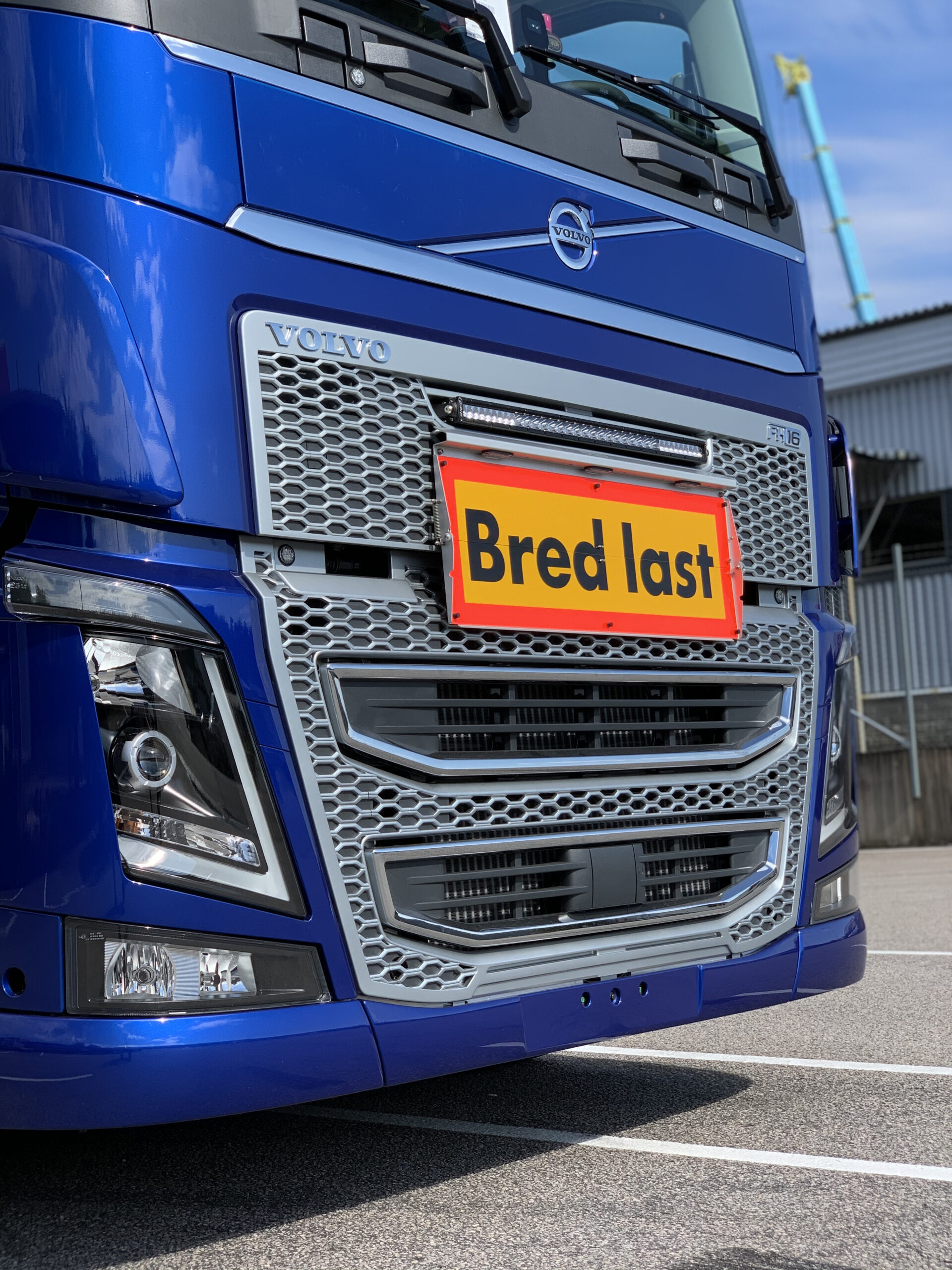 Pgtechin valmistama kiinnike taitettavan Bredlast varoituskyltin asentamiseen Volvo FH16 maskiin.